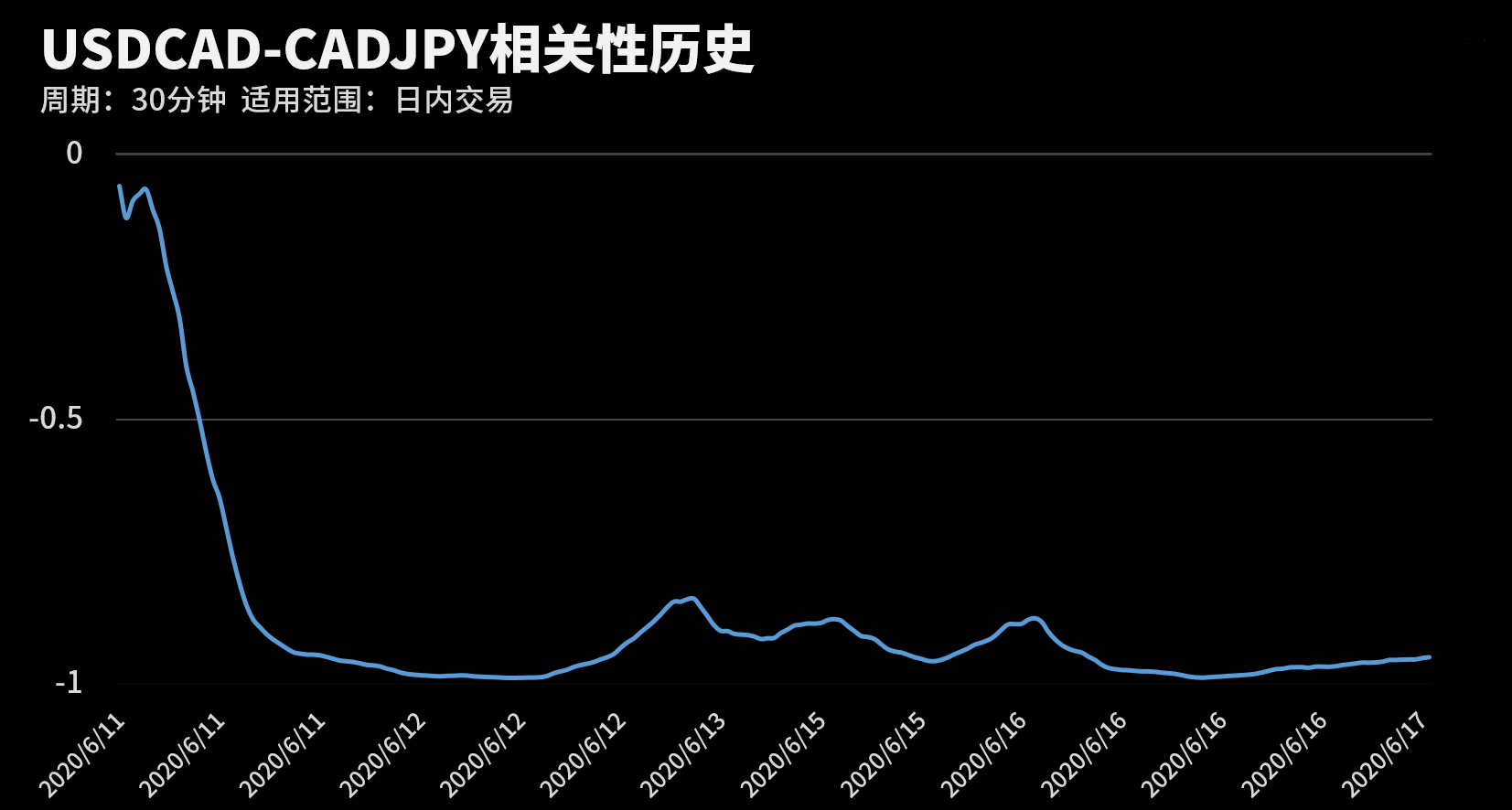 根据外汇相关性实时追踪,USDCAD在30分钟周期下与部分货币的相关性排行如下图: