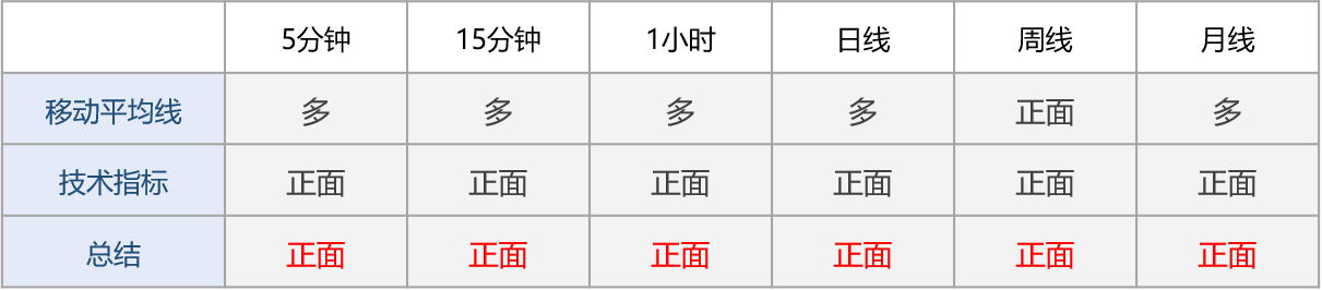 多周期技术信号显示日内市场情绪看涨:短线看涨(5分钟,15分钟,1小时),中线看涨(日线),长线看涨(周线,月线)。