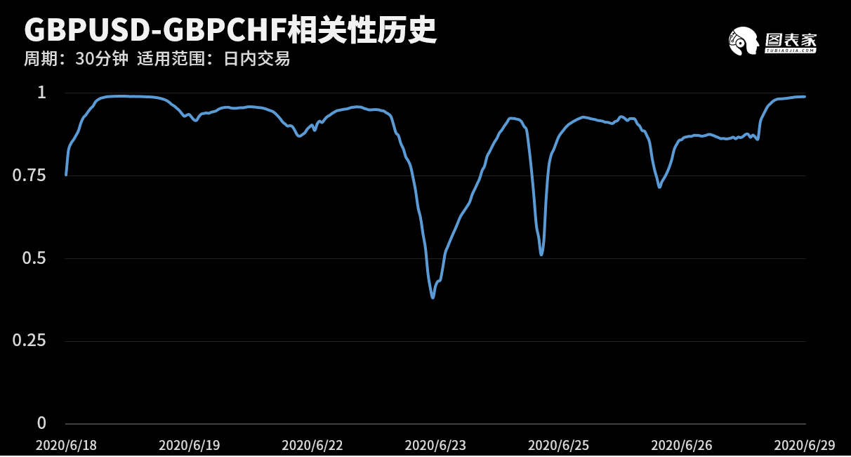 根据外汇相关性实时追踪,GBPUSD在30分钟周期下与部分货币的相关性排行如下图: