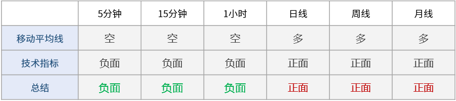 多周期技术信号显示日内市场情绪看跌:短线看跌(5分钟,15分钟,1小时),中线看涨(日线),长线看涨(周线,月线)。