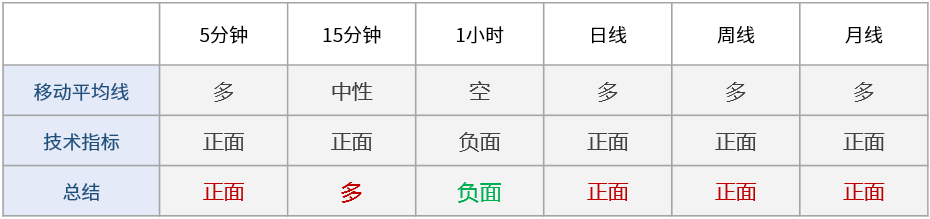 多周期技术信号显示日内市场情绪看涨:短线看涨(5分钟,15分钟,1小时),中线看涨(日线),长线看涨(周线,月线)。