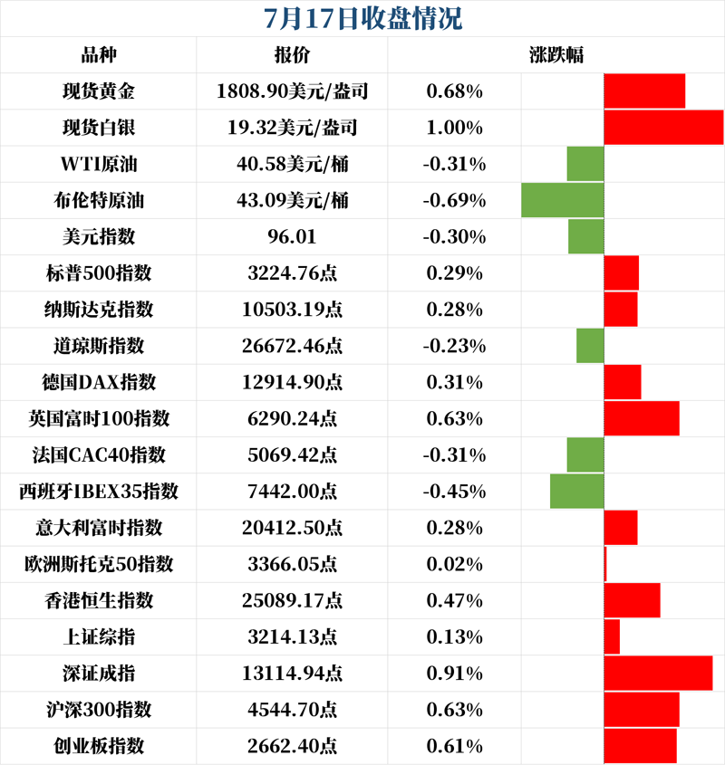 7月17日,A股三大股指冲高回落,创业板指盘中一度涨超3%。截至收盘,沪指涨0.13%,深成指涨0.91%,创业板指涨0.61%。盘面上,多元金融、保险、券商等板块跌幅均超3%。两市合计成交1.1万亿元。