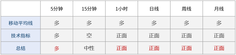 多周期技术信号显示日内市场情绪看涨:短线看涨(5分钟,15分钟,1小时),中线看涨(日线),长线看涨(周线,月线)。