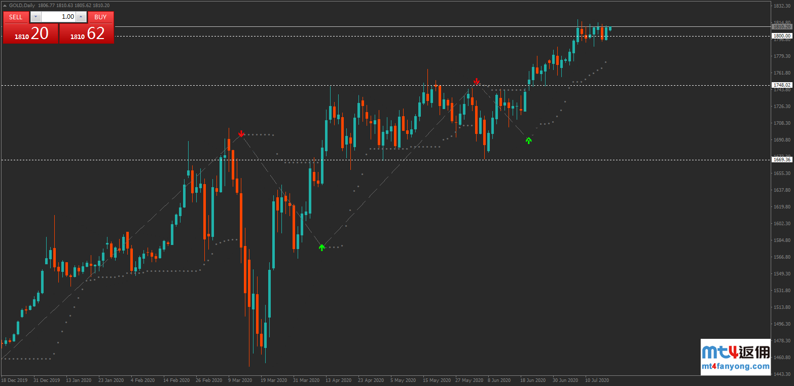 若价格反弹上行,阻力见1811,接着是前高1815。