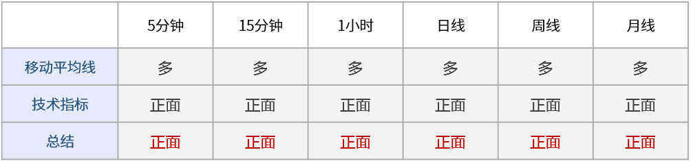 多周期技术信号显示日内市场情绪看涨:短线看涨(5分钟,15分钟,1小时),中线看涨(日线),长线看涨(周线,月线)。