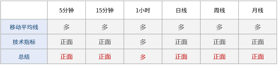 多周期技术信号显示日内市场情绪看涨:短线看涨(5分钟,15分钟,1小时),中线看涨(日线),长线看涨(周线,月线)。