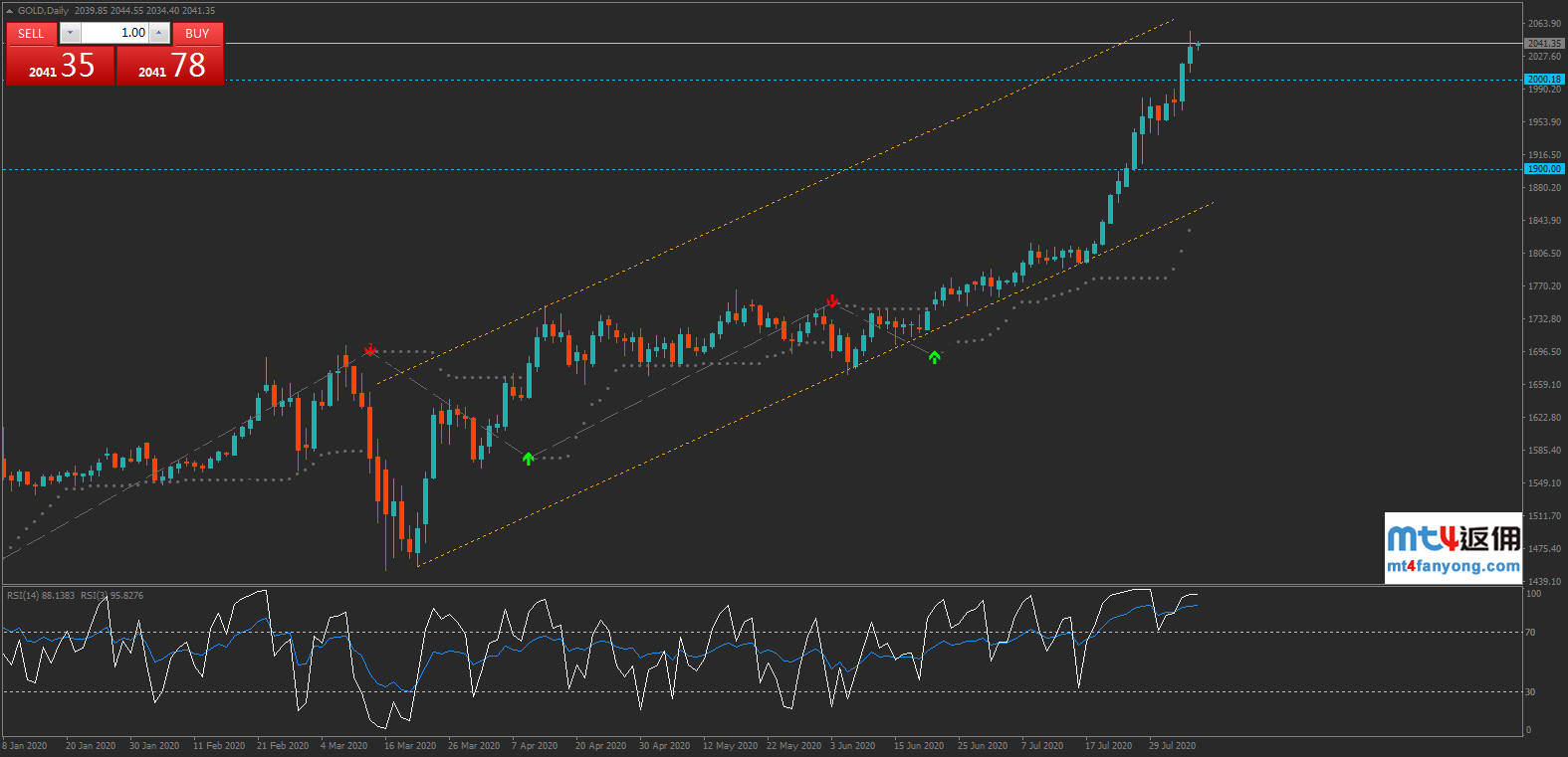 若价格回落,下方支撑见2000关口,破位则见1900关口,该水平略高于通道下轨支撑。