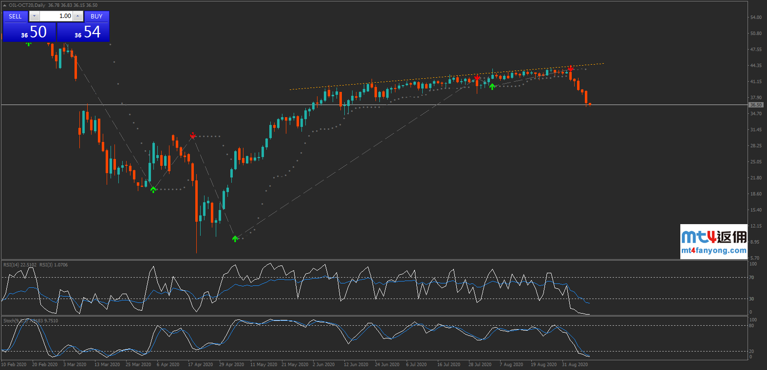原油价格图表:日线时间框架(2018年10月至2020年9月)