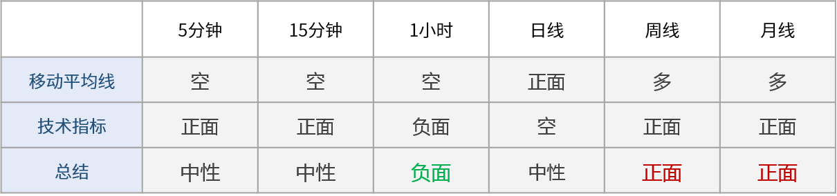 多周期技术信号显示日内市场情绪看跌:短线看跌(5分钟,15分钟,1小时),中线中性(日线),长线看涨(周线,月线)。