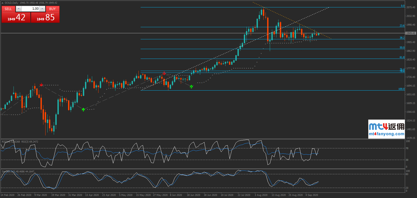 观点:日线看涨,关注下降趋势线。(跌破1920则观点失效)