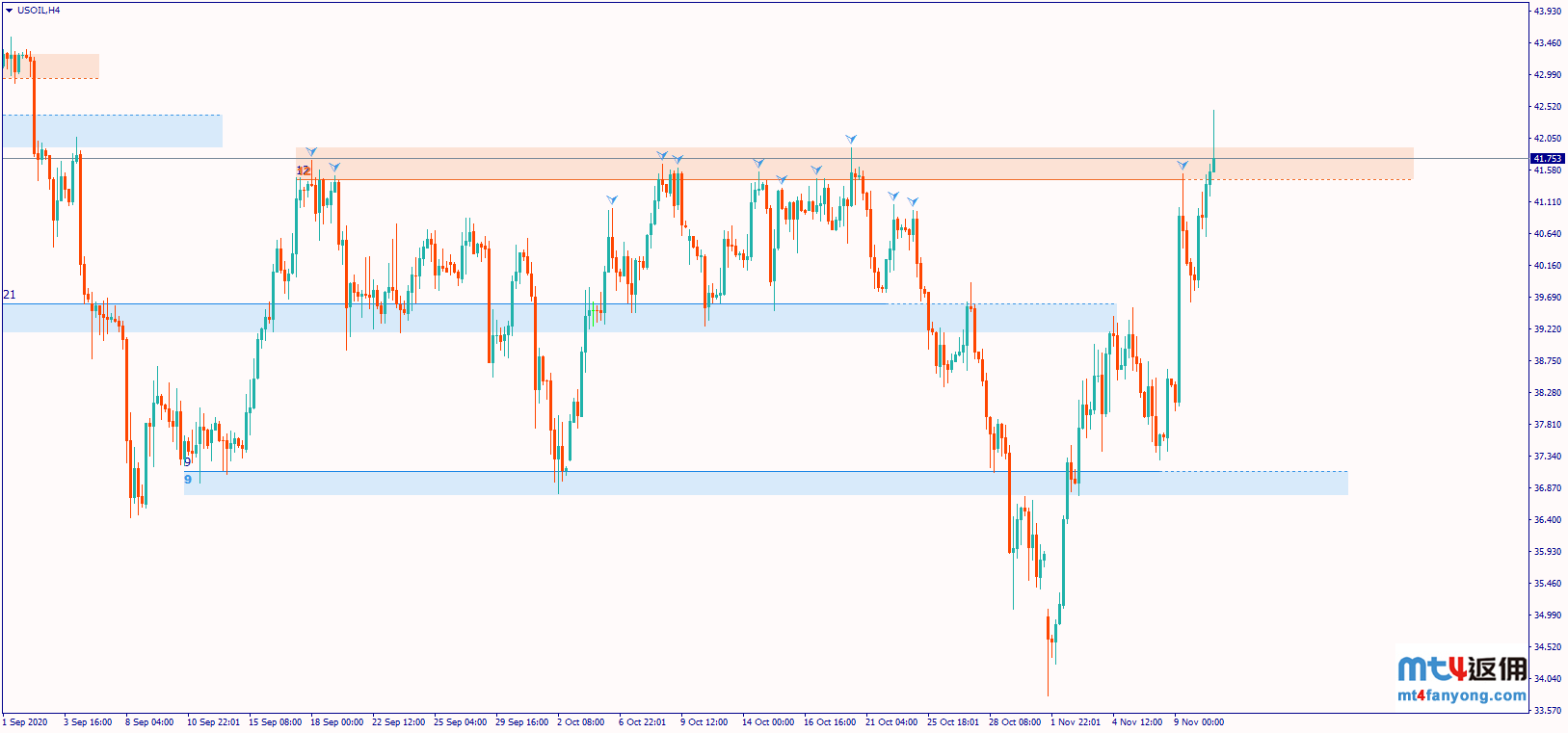 周二(11月10日)WTI原油企稳40.0美元支持后进一步攀升逾5%至日内高位42.26美元,两个交易日内录得累计近12%涨幅,显示市场看多油价意愿进一步增强。值得留意的是,WTI原油时隔三个月后再度触及42.0美元水平,中期趋势转向上行迹象越发明显。