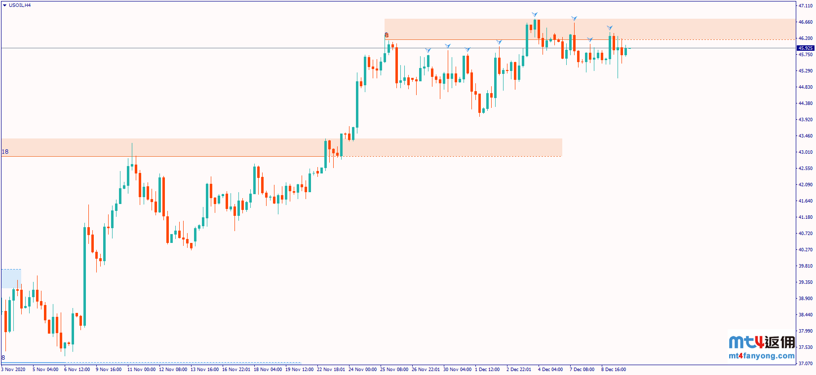 周三(12月9日)原油市场面临压力正进一步增大,尽管WTI原油盘中一度攀升至日内高位46.23美元,但随着EIA原油库存大增以及市场整体风险情绪出现转变迹象,油价最终再度辗转回落至45.50美元附近修整。尽管目前仍暂时持稳45.0美元上方,但仍需警惕风险情绪进一步恶化导致更大幅度回落的可能。