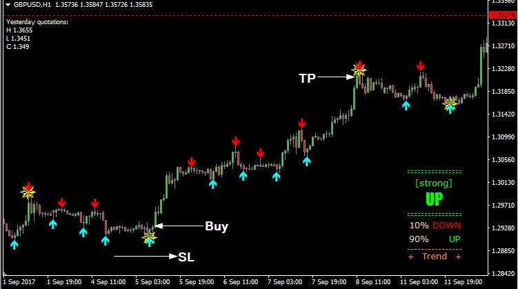 该指标提供有关市场趋势的信息。当它显示“Strong UP”信号时,您应该做多;仅当看到“Strong DOWN”信号时,应该做空。
