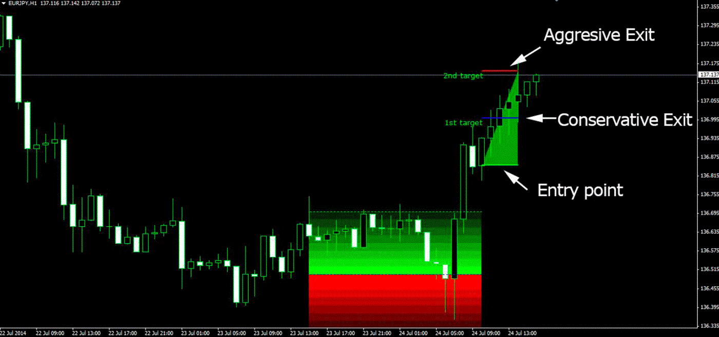 保守退出 – 下一轮数字。在上面的EUR / JPY例子中,我们的第一个目标是137.000水平。