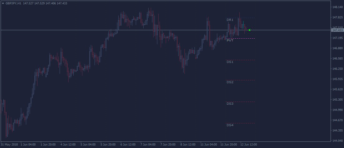 枢轴点指示器是一个简单的枢轴指示器,它将提供基本信息,例如每日枢轴点,支撑1,支撑2,支撑3,阻力1,阻力2和阻力3。与其他支撑位和阻力位方法相比,轴心点的优势在于,世界各地的每个交易员都使用相同的公式来计算轴心点,因此轴心点是交易员最常用来做出决策的市场心理水平。
