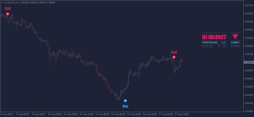 点/箭头形式的DJ X6指示器可以用来找出将发生哪种趋势。该指示器不会重新绘制,当趋势/新信号发生变化时,DJ X6会发出警报。