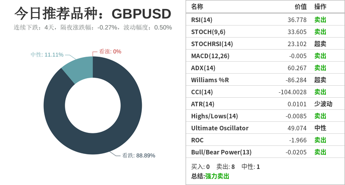 英镑美元(下跌:4天,隔夜涨跌幅:-0.27%,波动幅度:0.50%)。