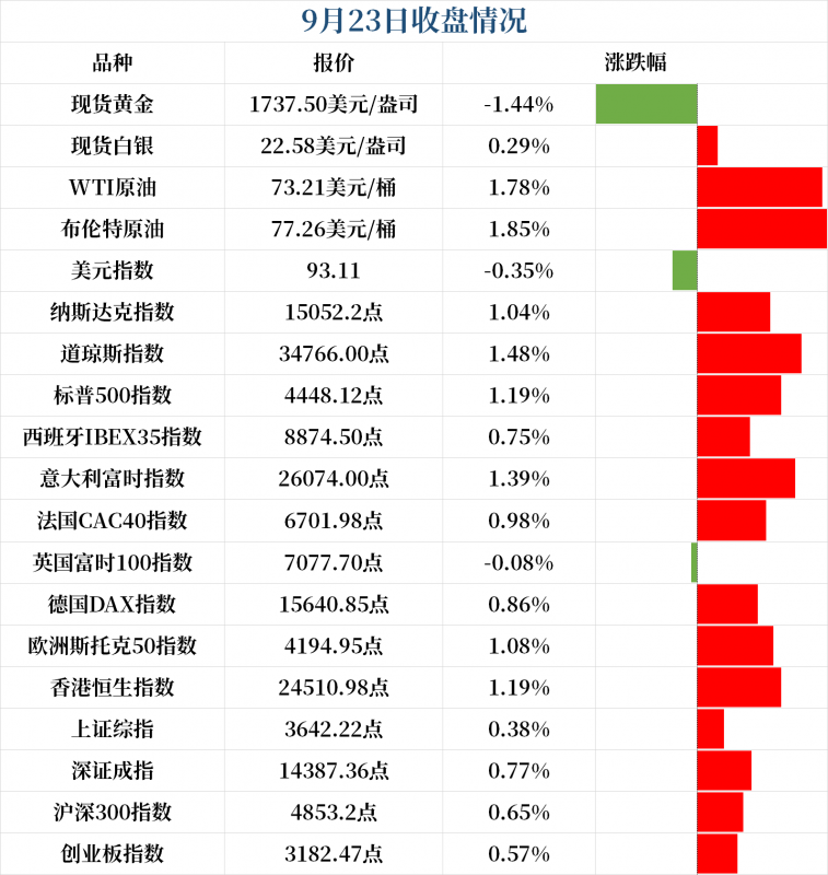 美元指数抹去了美联储利率决议后的涨幅,最终收跌0.35%,报93.11。美国十年期国债收益率美盘中站上1.4%,续刷7月14日以来新高。