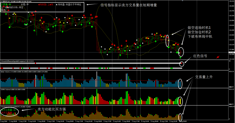 该交易系统包含布林线指标(BOLL),交易量指标(Better Volume),交易量指标(CDRW Volume),交易量指标(Tick Separate Volume),背离指标(VSA Difference Signals&Divergence),交易箭头指标,交易量和K线分析指标等技术指标。该交易系统适用于趋势行情和波段行情。建议配合技术图形进一步确认趋势突破或者趋势反转等行情。该交易系统主要是针对交易量和K线的变化情况判断走势的变化,一定程度上借鉴道氏理论的几大原则和蜡烛图分析原理。