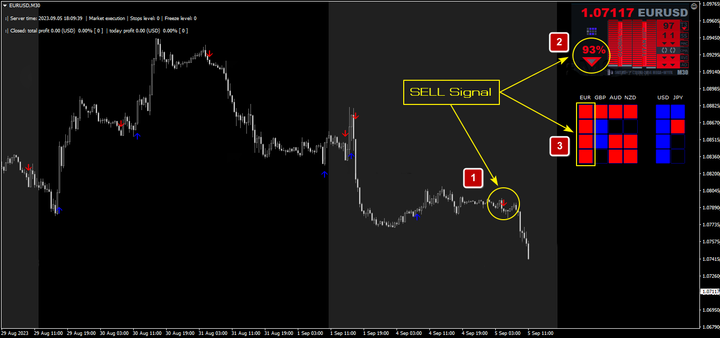- 当箭头出现时,检查是否与市场趋势一致。如果两者一致,则为有效的卖出信号。
