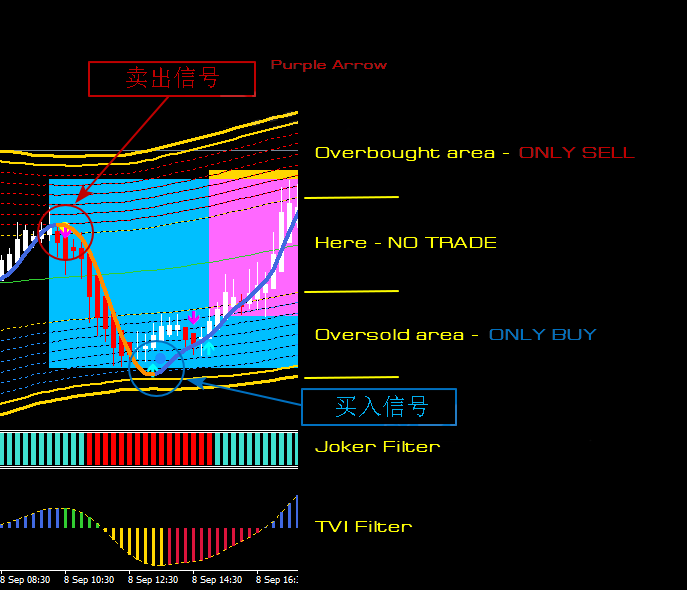 如果你更谨慎地处理交易信号,你可以使用这个策略中提供的额外过滤器,并等待Joker Filter和TVI Filter对主要信号的确认。此外,你还可以使用图表右侧的信息面板来监控其他时间框架的趋势情况。