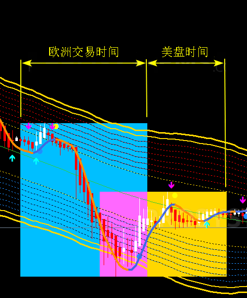 1. 交易时间 – 欧洲(蓝色区域)和美国(黄色区域)交易时段。你不应该在其他时间交易: