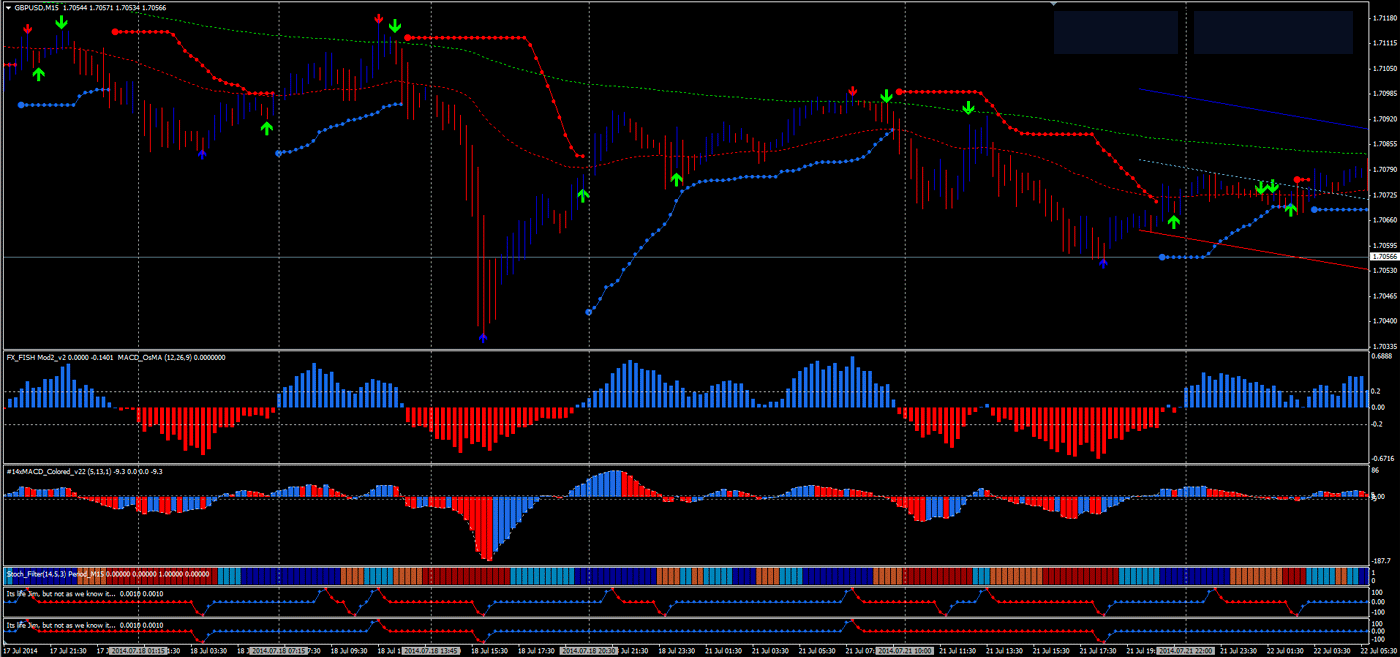 当所有指标转为红色时做空,任一指标颜色首次改变时立即平仓。