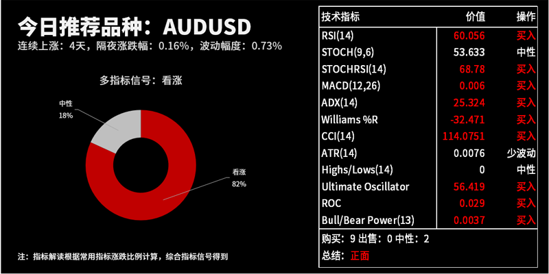 技术分析:今日交易机会提醒(07月07日) 日内推荐交易品种及相关策略: 澳元美元(上涨:6天,隔夜涨跌幅:0.63%,波动幅度:0.86%)。 根据外汇相关性实时追踪,AUDUSD在30分钟周期下与部分货币的相关性排行如下图: 其中,AUDUSD和AUDCAD在该周期下相关系数达到0.92,对投资者提出如下建议: ··· 作者: MT4返佣网 2020-07-07 10:01 391